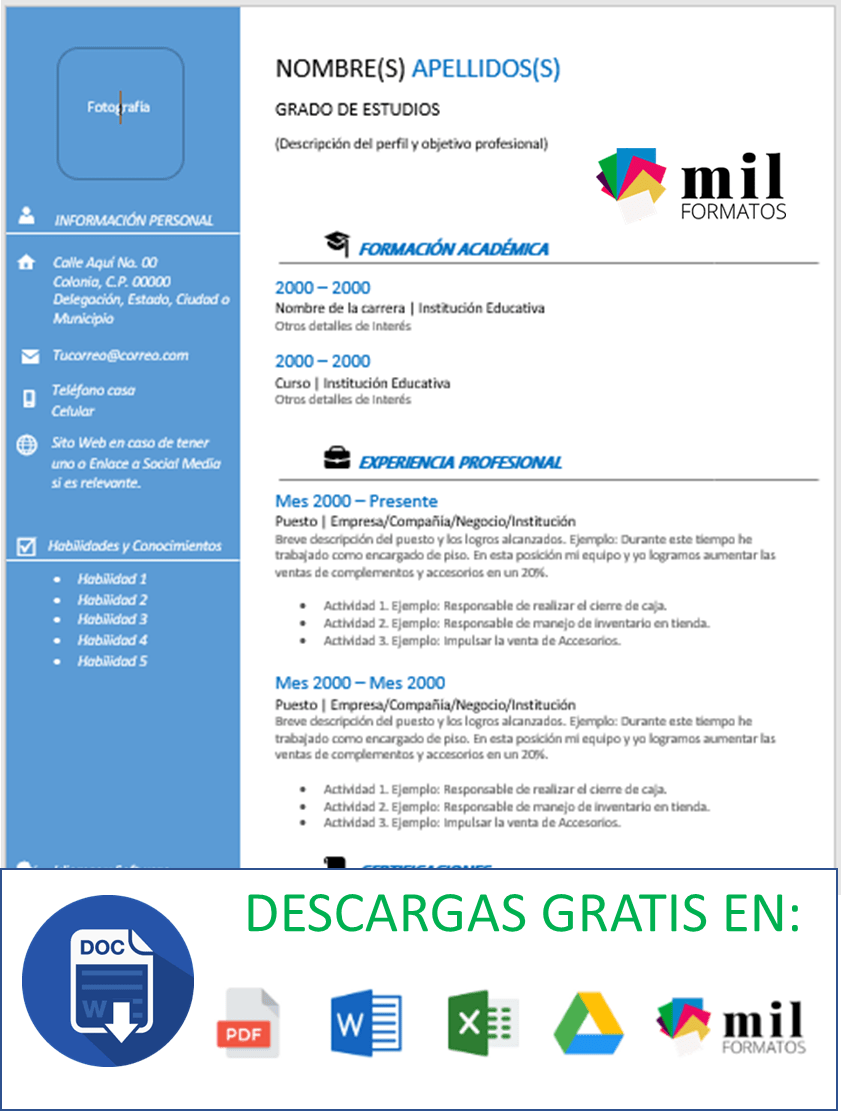 Contamos con más de 100 plantillas de cv en blanco para rellenar fácil y rápido en word. Creador de cv gratuito online. Crea tu currículum rápido y fácil. En su versión gratuita, permite crear un currículum de una página eligiendo entre ocho plantillas y tres tipos de disposición para las secciones . Un cv online gratis de forma rápida y sencilla a través de internet.