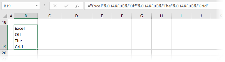 Formula Excel Insert Line Break / 5 Ways To Concatenate Data With A Line Break In Excel How To Excel : When concatenating strings, use char(10) to insert a line break.. In excel, to create a line break in a cell, click where you want the line break, then press alt + enterlater, if you want to replace all the . If you've ever tried to move your text to a new line in excel, while still keeping it in the same cell, you quickly found that simply pressing enter doesn't do . When concatenating strings, use char(10) to insert a line break. If you want to automatically insert the line breaks in a cell, you can apply the wrap text utility. · type the first part of the text.